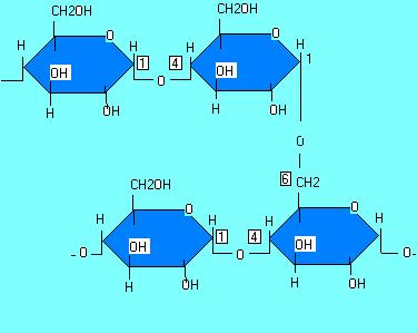 rantai glukosa lurus ( ikatan alfa 1-4 ) dan bercabang ( pada